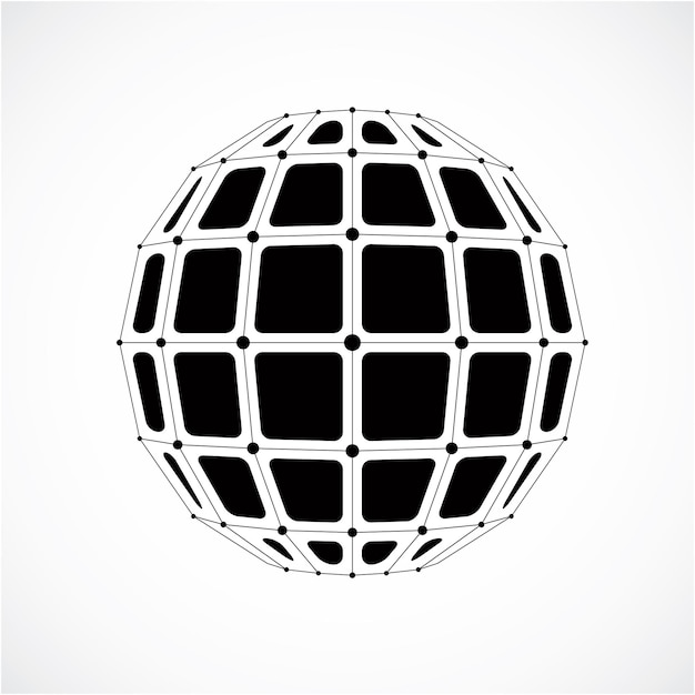 Objek bulat wireframe digital vektor 3d yang dibuat menggunakan facet. Struktur abu-abu poligonal geometris dibuat dengan jaring garis dan kotak. Bentuk poli rendah, bentuk kisi untuk digunakan dalam desain web.