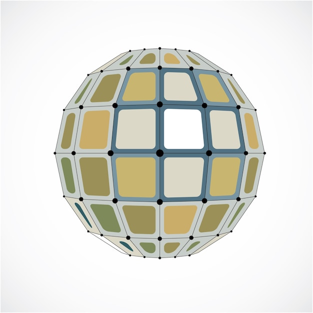 Objek bulat kerangka kawat digital vektor 3d yang dibuat menggunakan facet. Struktur kuning poligonal geometris yang dibuat dengan jaring garis dan kotak-kotak. Bentuk poli rendah, bentuk kisi untuk digunakan dalam desain web.