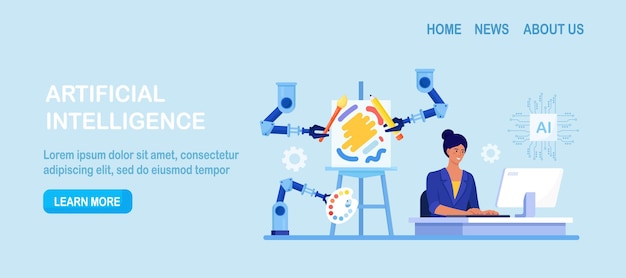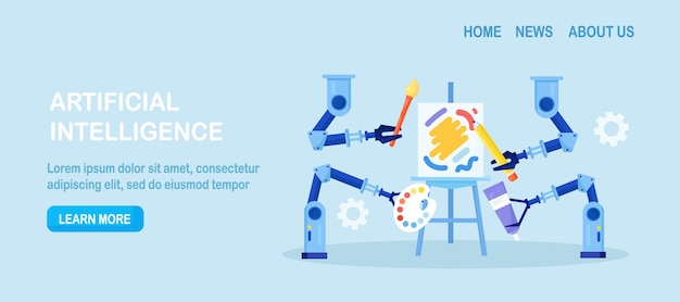 Robot melukis untuk menciptakan karya seni Kecerdasan buatan menghasilkan karya seni yang memukau Teknologi AI dalam hobi Lengan robot menciptakan seni lukis yang dikendalikan oleh algoritma komputer